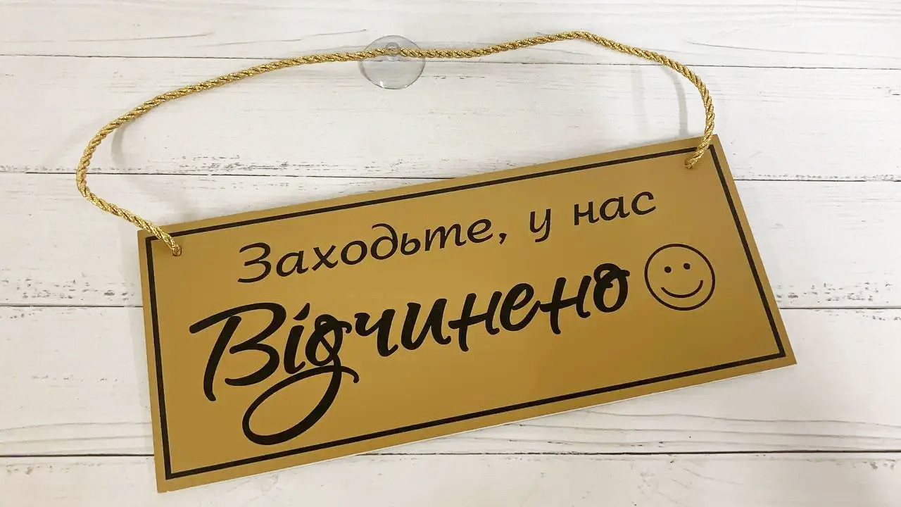 Двостороння табличка "відчинено-зачинено" призначена для кріплення на дверях магазинів, кафе, ресторанів, офісів і т. д. і комплектується присоском.