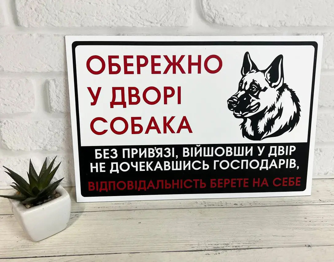 Металева Табличка Вівчарка "Обережно, Злий пес" будь-яка порода собаки