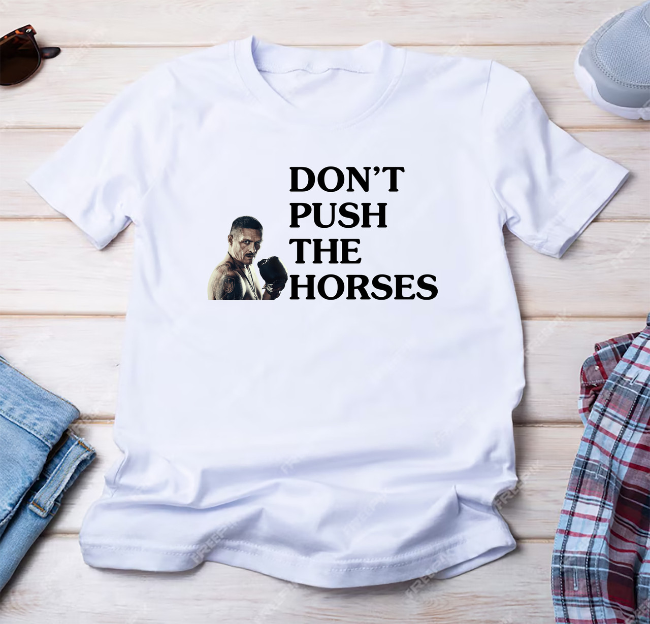 Футболка “Don’t push the horses” з Олександром Усиком — для тих, хто цінує гумор чемпіона!