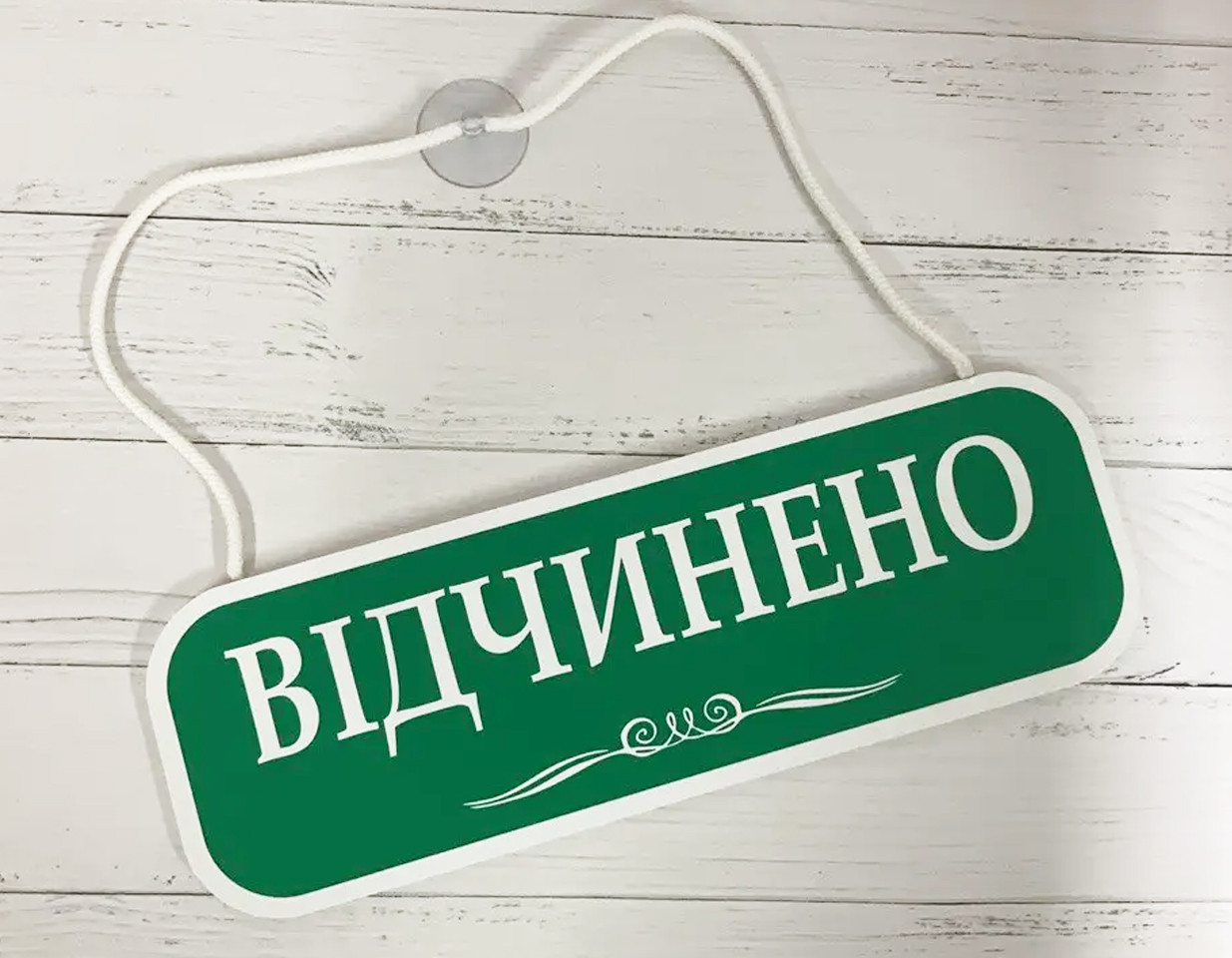 Двостороння табличка "відчинено-зачинено" призначена для кріплення на дверях магазинів, кафе, ресторанів, офісів і т. д. і комплектується присоском.